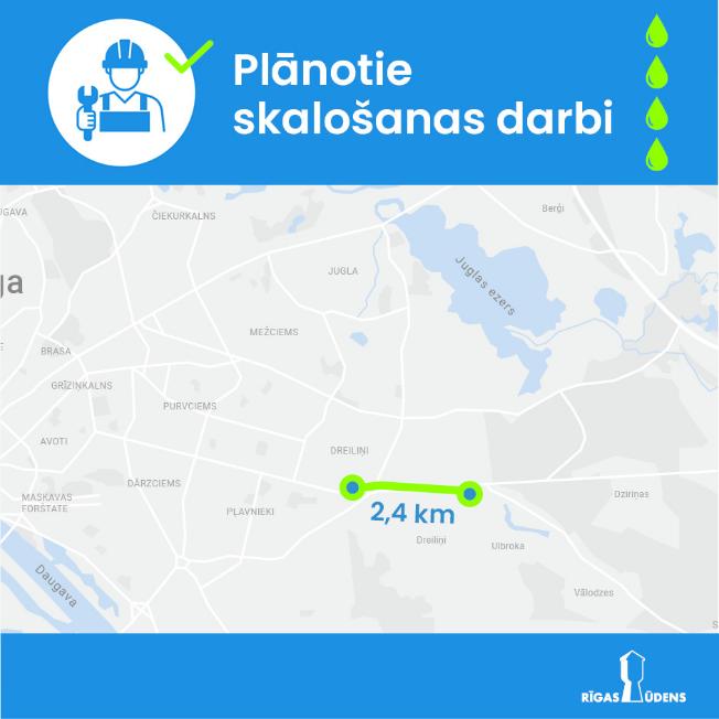 SIA “Rīgas ūdens” plāno veikt maģistrālo ūdensvadu skalošanu no 14. līdz 17. jūlijam apmēram 2,4 km garā posmā no E. Valtera ielas līdz Piķurgai. Rīgas labajā krastā – Pļavniekos, Purvciemā, Dārzciemā, Ķengaragā un Latgales apkaimē – iespējami ūdens uzduļķojumi.